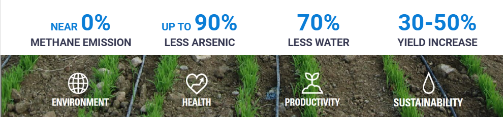 従来の水田農法では、大量の水を使用するだけでなく、温室効果ガスであるメタンの排出源にもなっています。実際、稲作は世界の淡水使用量の約30〜40%を占め、メタン排出量の約12%に関与しているといわれているのです。